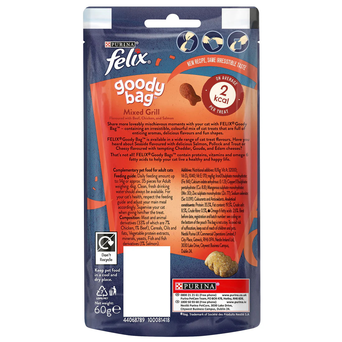 Felix Goody Bags – Containing An Irresistible, Colourful Mix Of Meaty Treats That Are Full Of Enticing Aromas, Delicious Flavours And Appealing Textures. Felix Goody Bags All Contain Proteins, Vitamins And Omega 6 Fatty Acids To Help Your Cat Live A Healthy And Happy